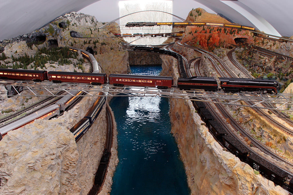 Croton Canyon RR is an environmental kinetic sculpture, using O gauge model trains as the motion medium.
